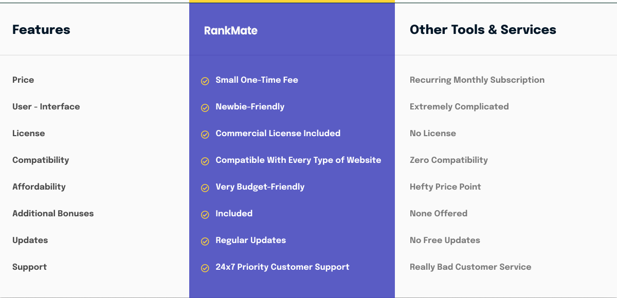 P.S While we're excited to offer unrestricted access to RankMate for a single price we can only do that during this limited launch.